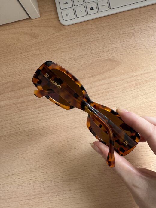 Achetées d’occasion sur Vinted pour mes 30 ans, ces lunettes des années 90 sont de grande qualité et très solides, avec des verres d’origine gravés. Exemple parfait de comment la seconde main permet d’acquérir des objets durables et esthétiques pour très peu cher.