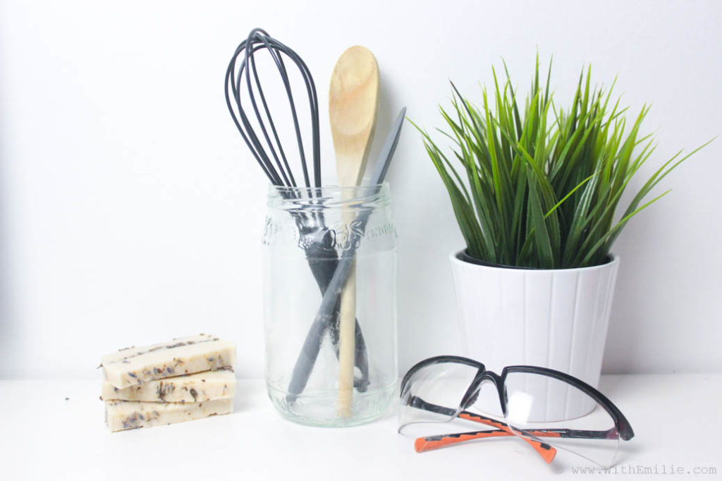 Un autre conseil que je peux vous donner, c’est de dédier vos ustensiles aux savons et autre produits faits maison et de ne pas les mélanger à votre tiroir à couverts de la cuisine. C’est premièrement plus sécurisant (on évite ainsi de manger des résidus de soude !) et deuxièmement plus pratique (pas besoin de courir après les ustensiles de cuisine déjà utilisés ou en utilisation puisque l’on a son set dédié !